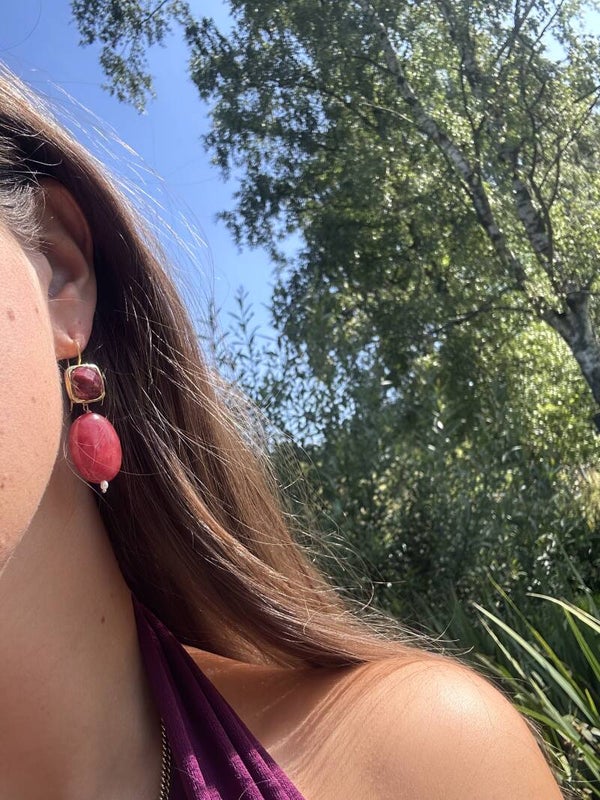 Oorbellen van jasper kwarts, pareltjes en facet geslepen robijn kwarts