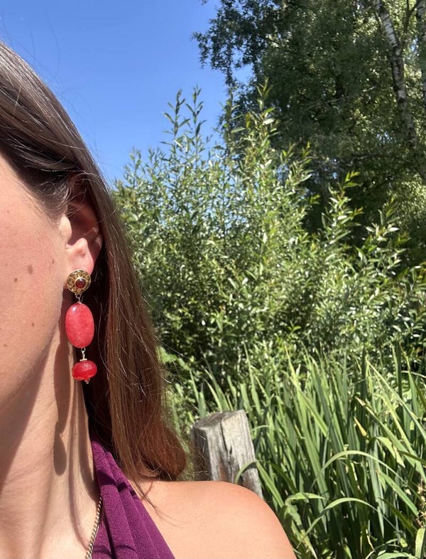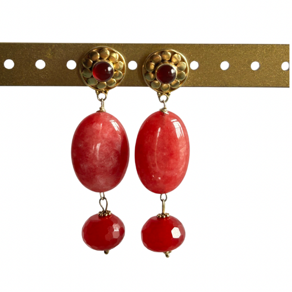 Oorbellen met facet geslepen robijn kwarts en jasperkwarts