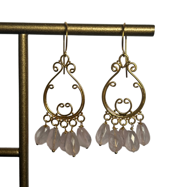 Deze oorbellen zijn gemaakt van een laagje goud op sterling zilver en facet geslepen rozenkwarts.