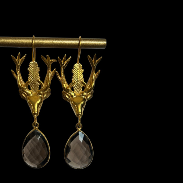 Gold plated herten oorbellen met facetgeslepen rook kwarts.