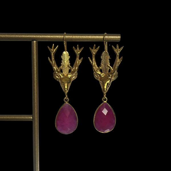 Gold plated herten oorbellen met facetgeslepen ruby kwarts.