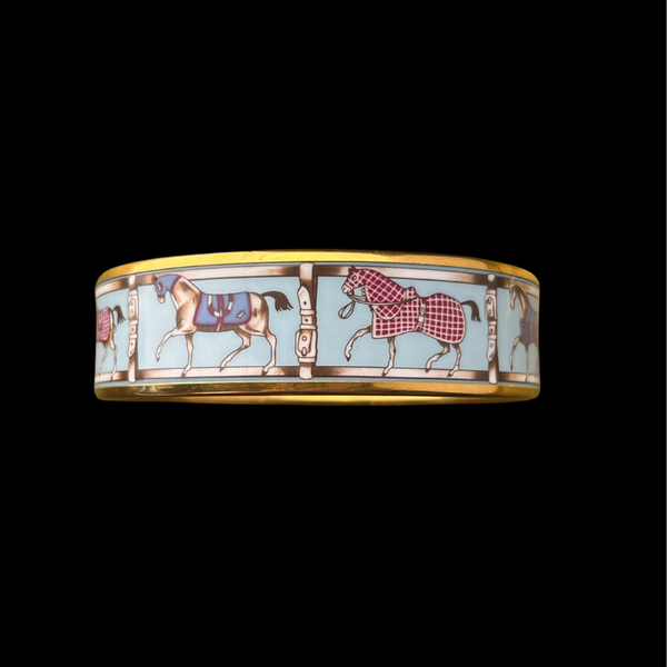 Hermes emaille lichtblauwe armband met paarden in zeer goede staat.