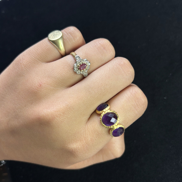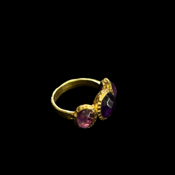 Ring gemaakt van een laagje goud op sterling zilver met facetgeslepen amethist.