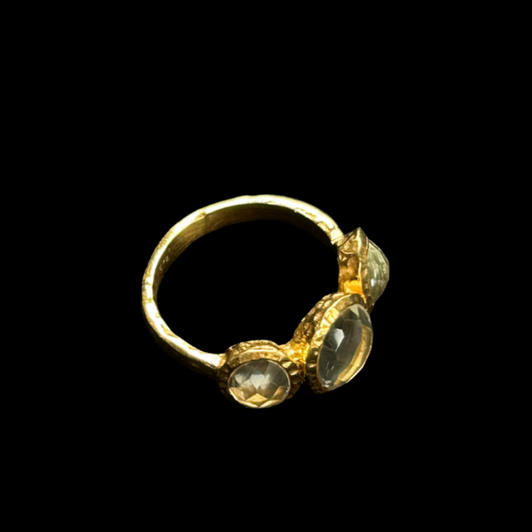 Ring van een laagje goud op stelring zilver met facetgeslepen bergkristal kwarts.